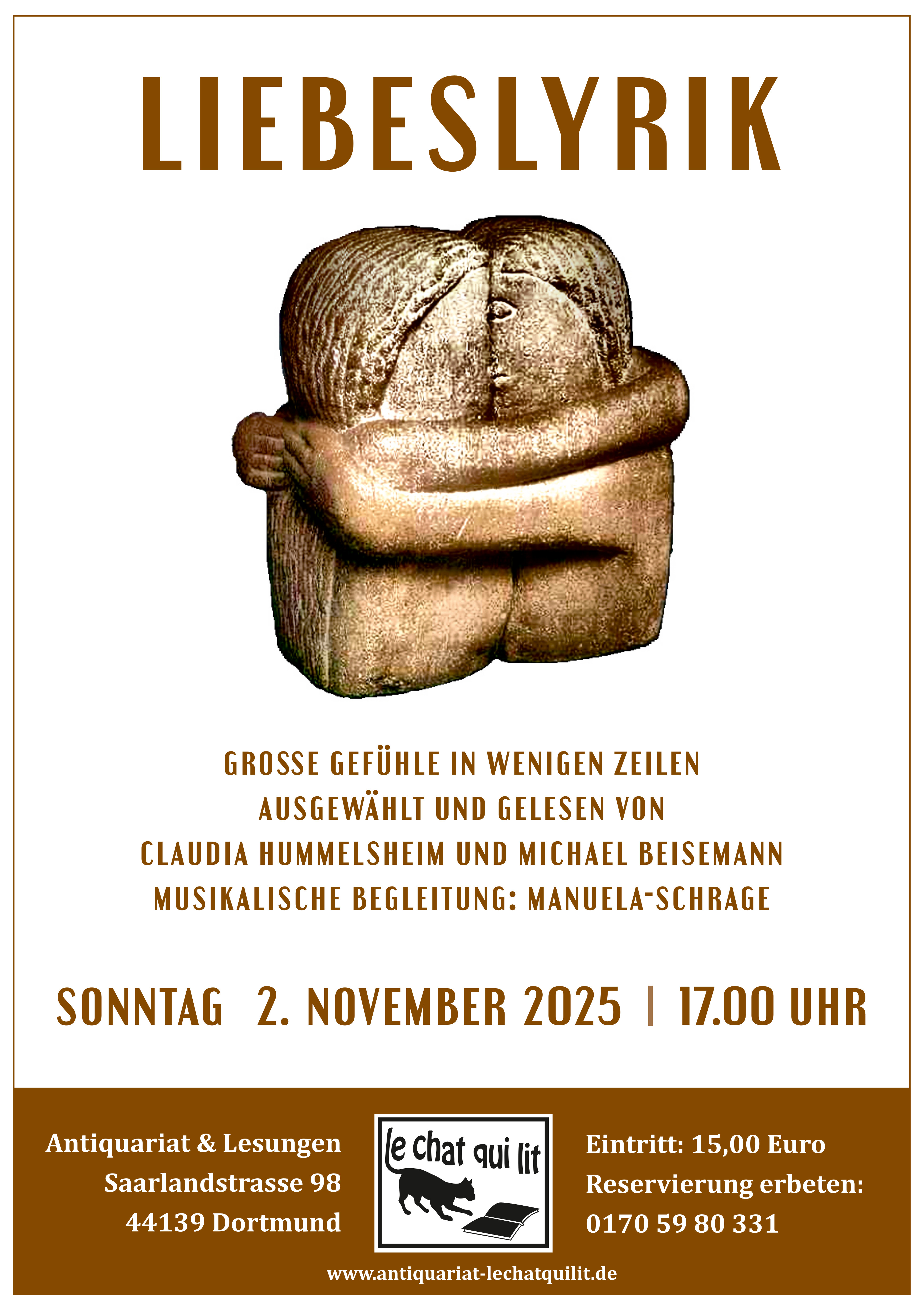 Große Gefühle in wenigen Zeilen Lesung Liebeslyrik Claudia Hummelsheim und Michael Beisemann stellen Liebeslyrik aus alter und neuer Zeit vor.…